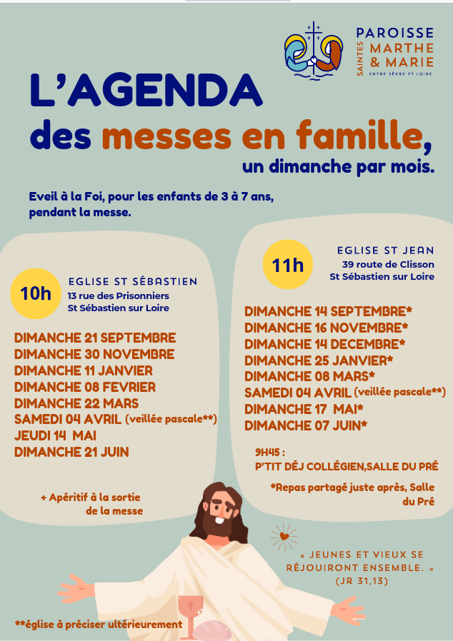 Chaque mois, une messe en famille est célébrée dans les églises de St Jean et de St Sébastien.