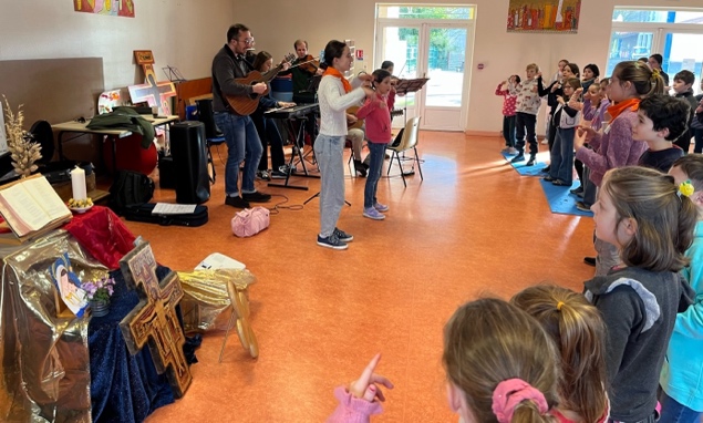 60 enfants et leurs animateurs, accompagnés par une belle équipe de musiciens du Mej44, ont vécu ce temps fort sur le thème « Semons la paix et la joie ».